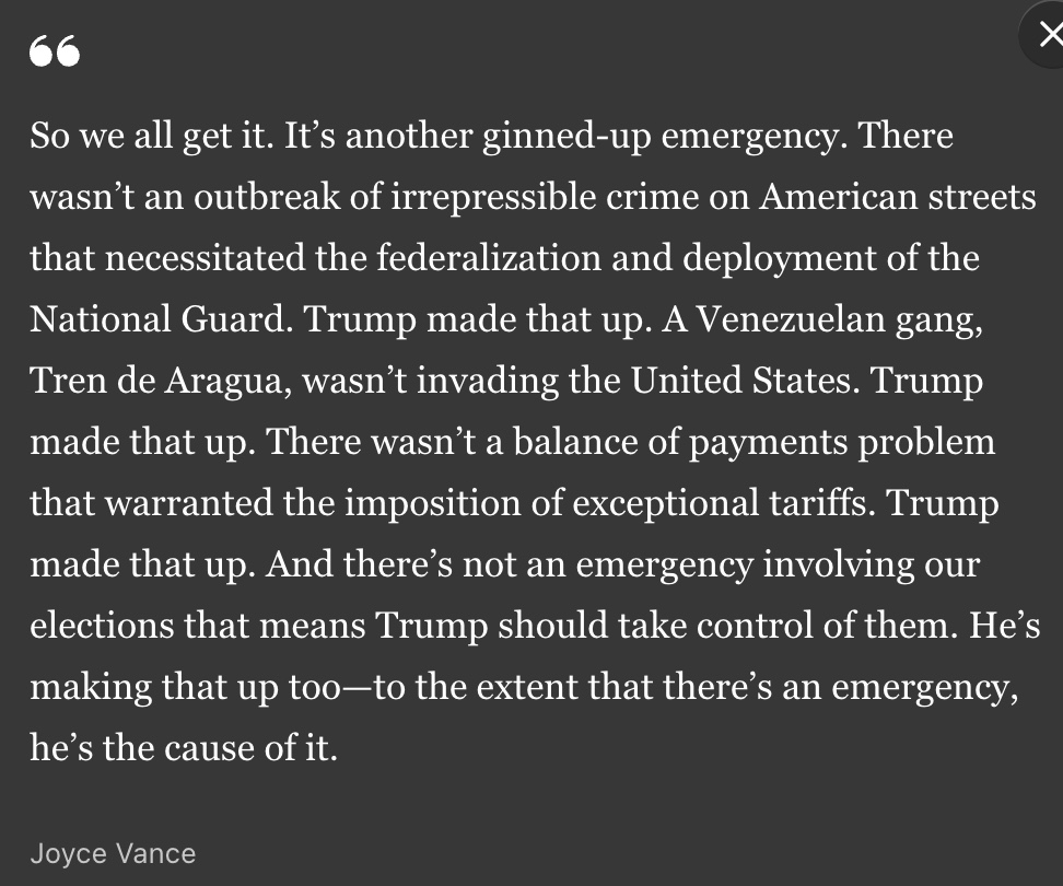 America’s favorite demented malignant narcissist was ranting last night about how he’s going to take over the midterm elections if Congress doesn’t pass the Voter Suppression Act of 2026: